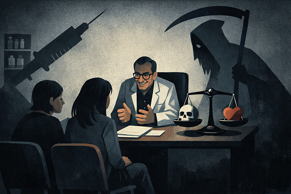 Elle explique son cas au psychiatre, et celui-ci opine de la tête, puis lui dit : « Avez-vous pensé au suicide assisté ? »